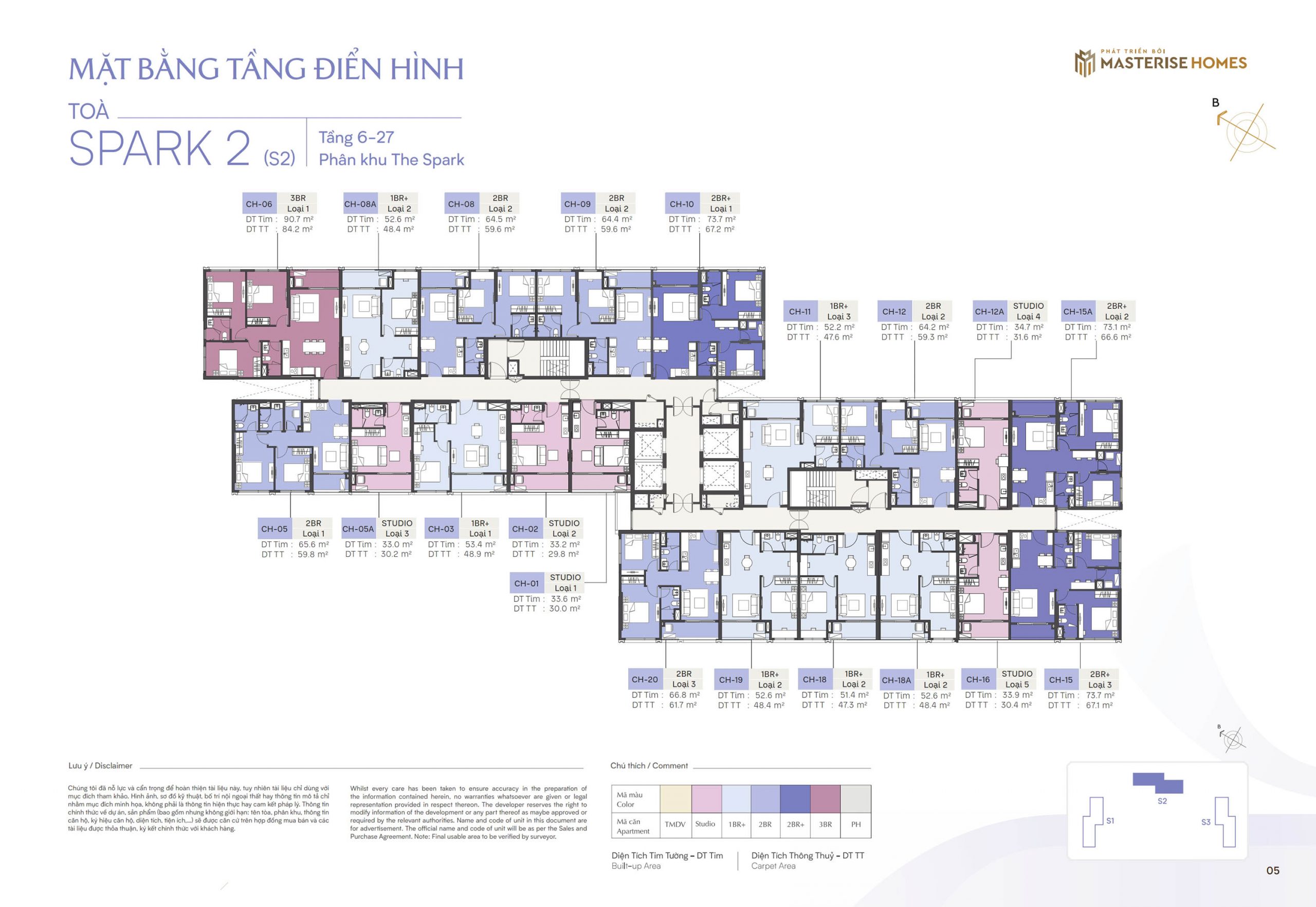 Loại hình căn hộ: Studio, 1PN+, 2PN, 2PN+, 3PN và Penthouse.