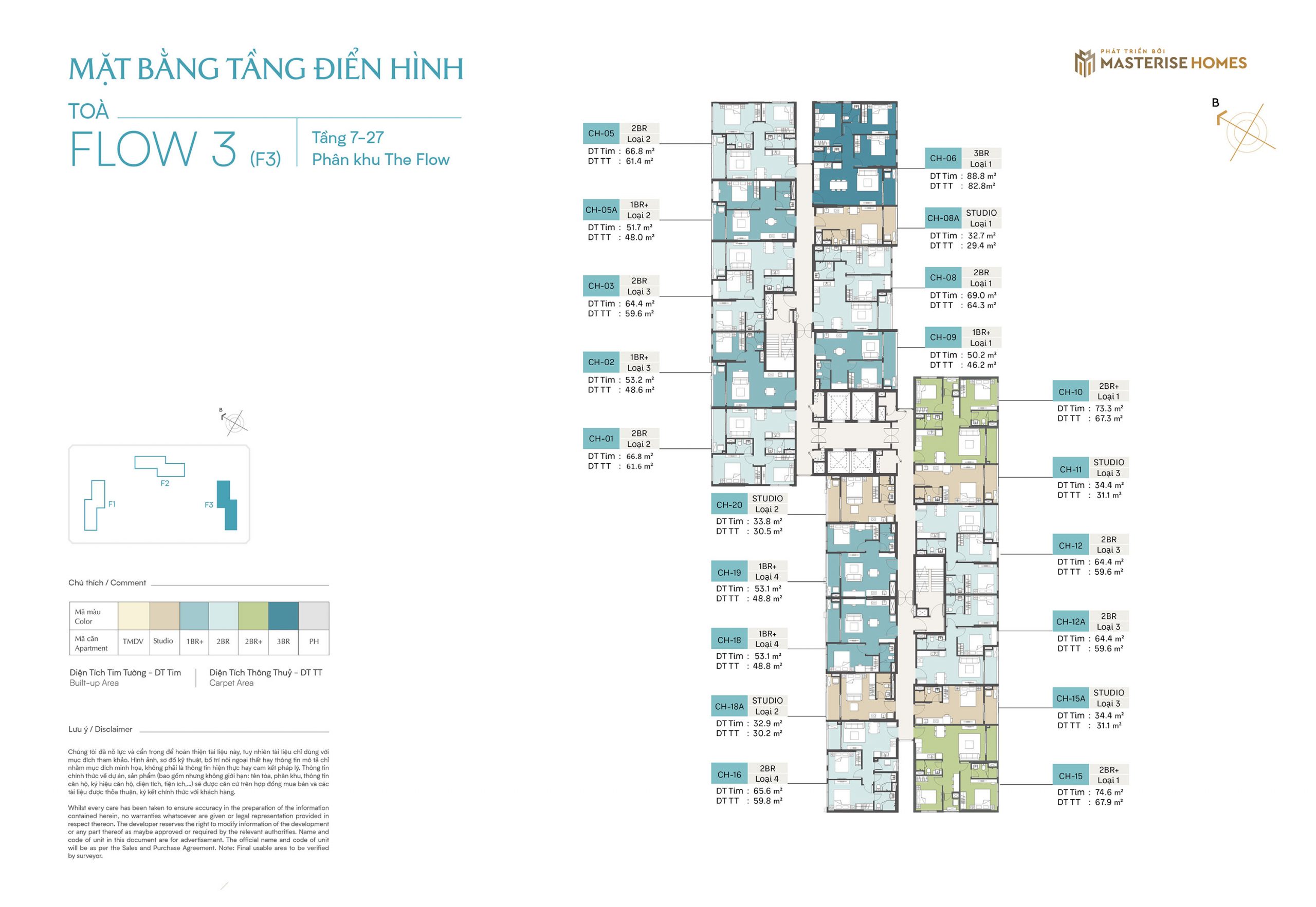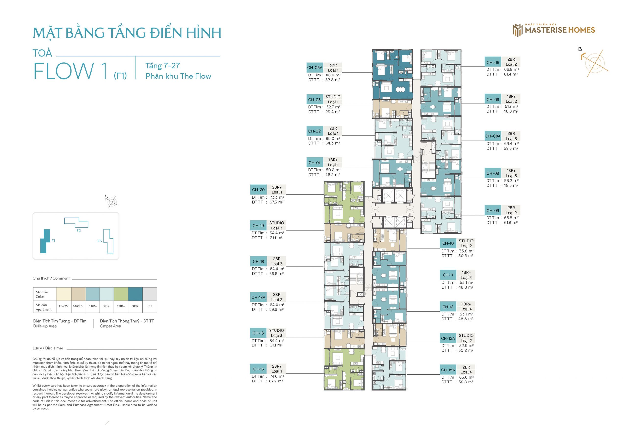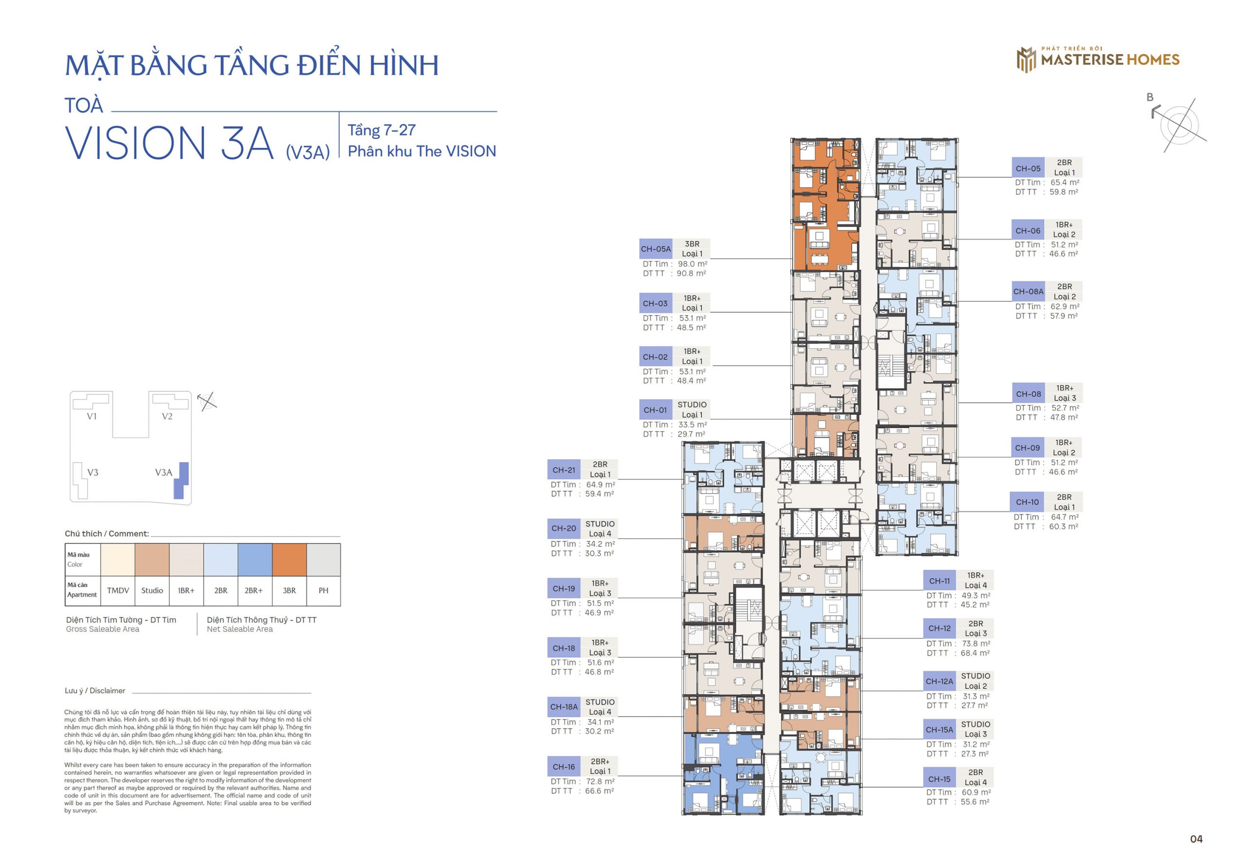 Diện tích: 29,4 – 93,3m2 (căn hộ Studio – 3PN).