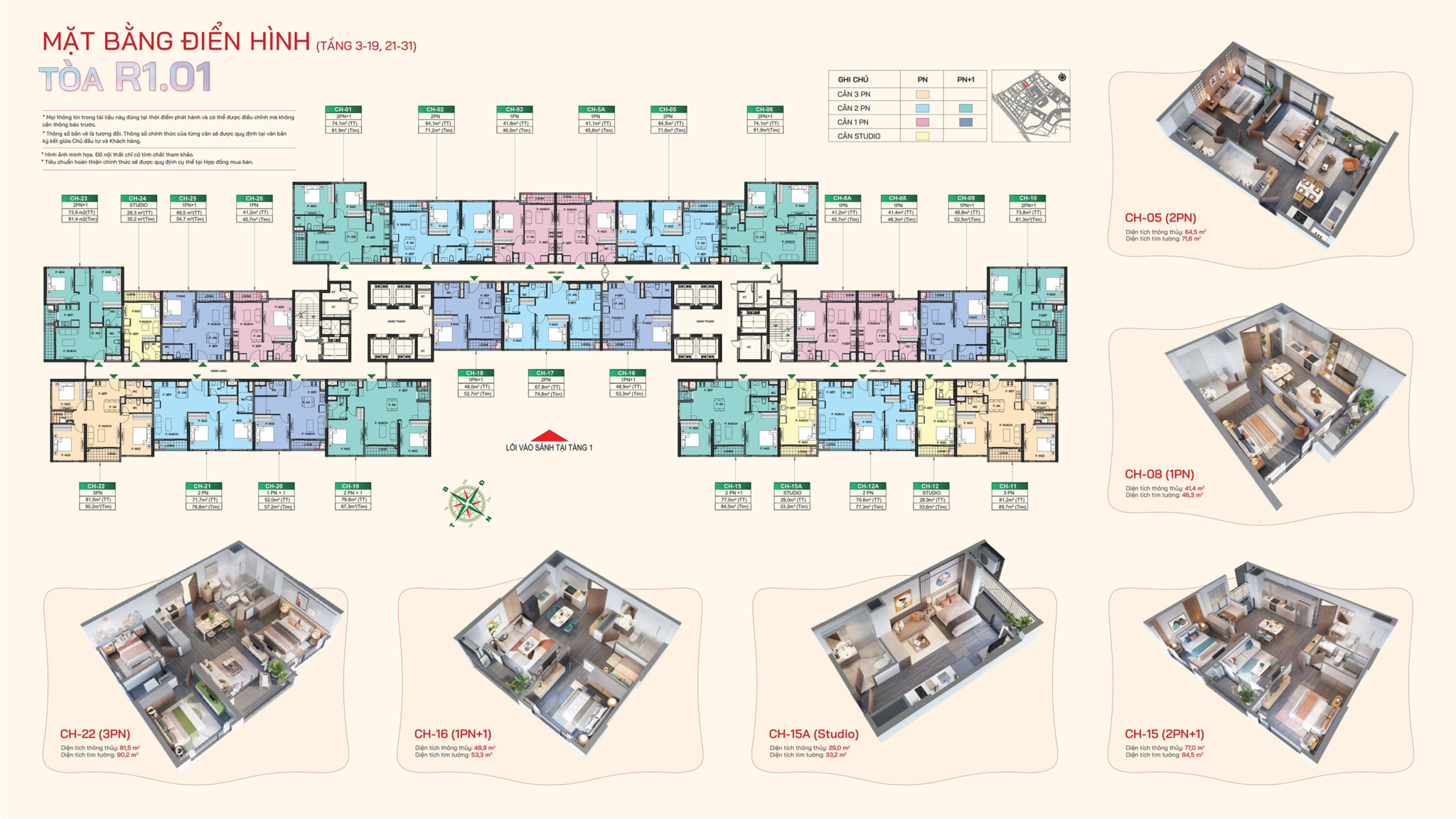 | Studio | 26 – 29m2 | 1,3 – 1,6 tỷ |